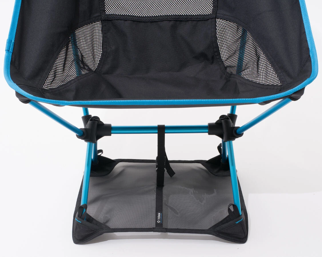 De grondzeil voorkomt dat de stoel twee wegzakt in zachte grond, sneeuw of op het strand. De voeten van de stoel worden in de versterkte hoekzakken geschoven en de grondplaat kan met een centrale bevestiging aan de stoel worden bevestigd. Het kan worden opgevouwen en samen met de stoel worden ingepakt.